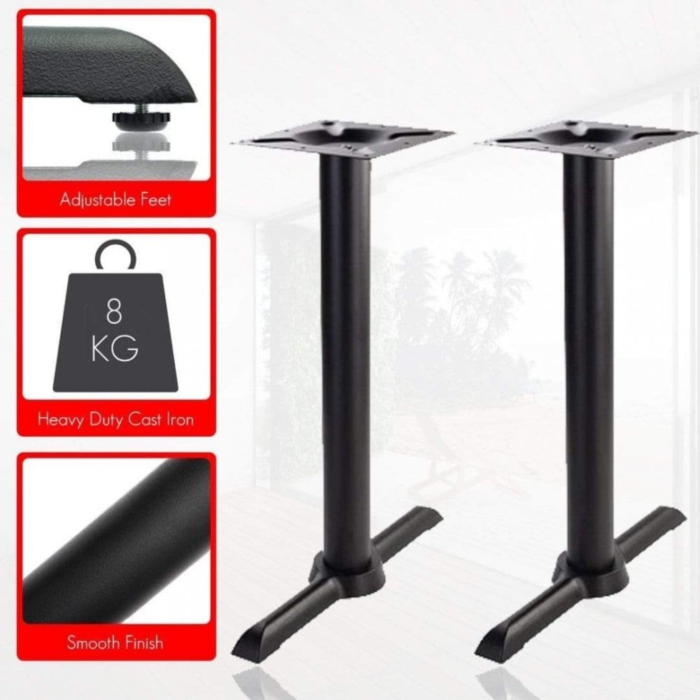 This antonio twin pedestal cast iron table base is great value for money and perfect for all kinds of cafes and commercial establishments. It is strong and durable for a long lifespan and comes in three different height options.