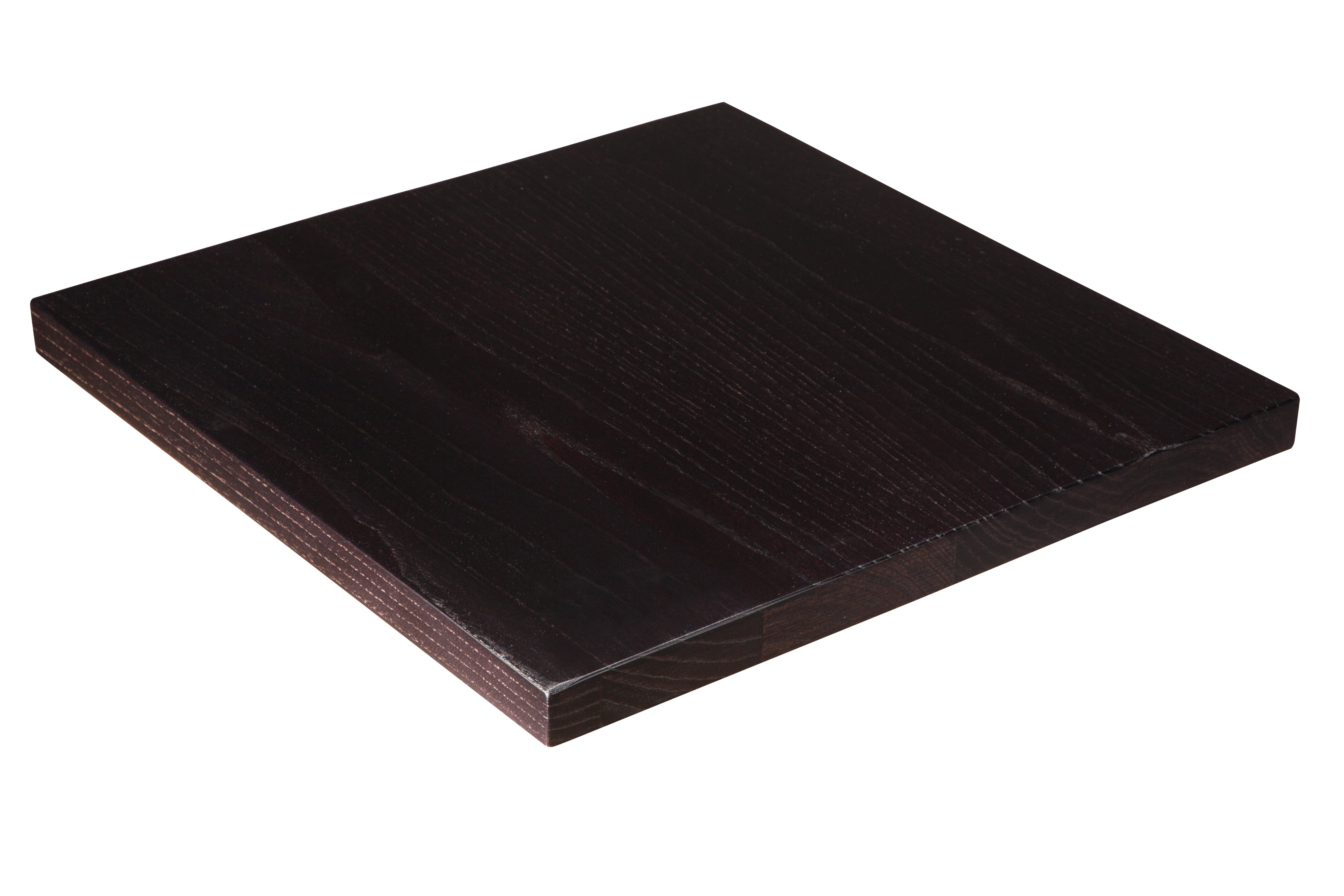 This solid wood table top is made from real ash wood and is finished in a rich deep black stain and finished with a clear lacquer and are designed for restaurants, cafes, hotels, and wine bars in mind. Solid wood table tops give a natural look to any dining environment and are easy to maintain. Available in a wide variety of edge styles (see images), this tabletop is also available in a wide range of finishes and styles.