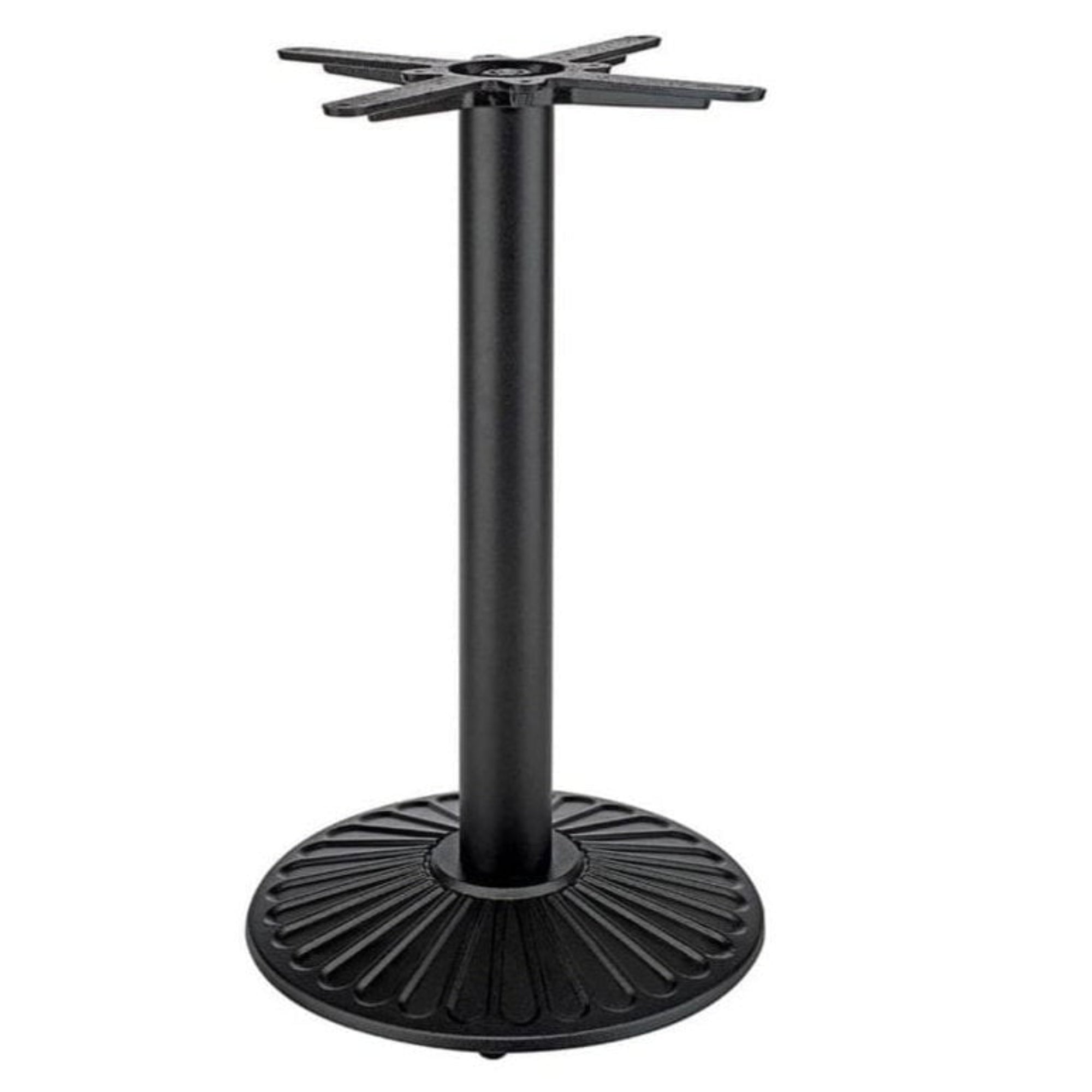 The crewe small round black cast iron table base has an elegant design and is compatible with almost all our tabletops.