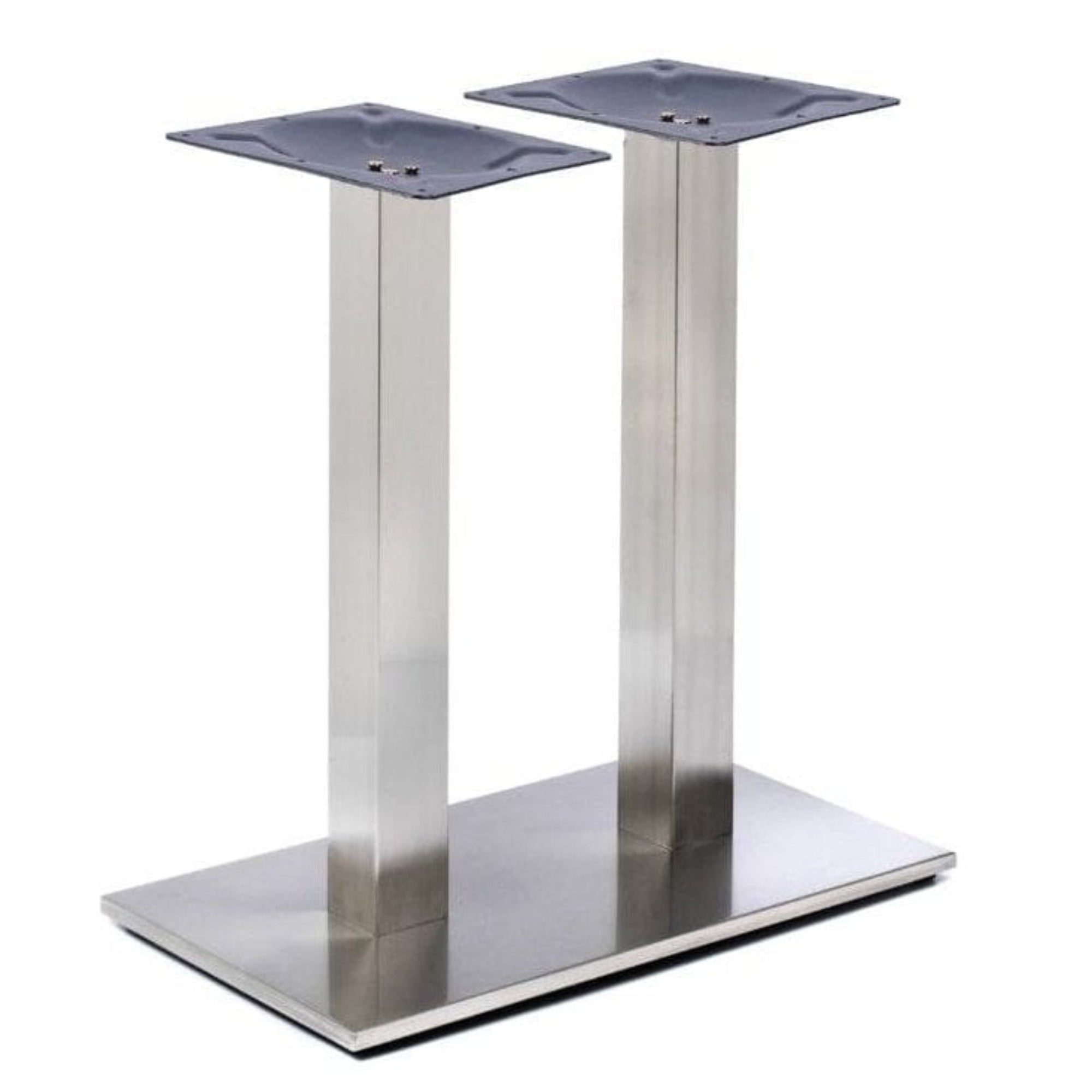 The danilo twin pedestal rectangle stainless steel table is a contract quality table base with a brushed stainless steel finish. With a heavy-duty cast iron base plate for extra weight and durability. It is sure to brighten any restaurant, bar, or cafe it is used in.