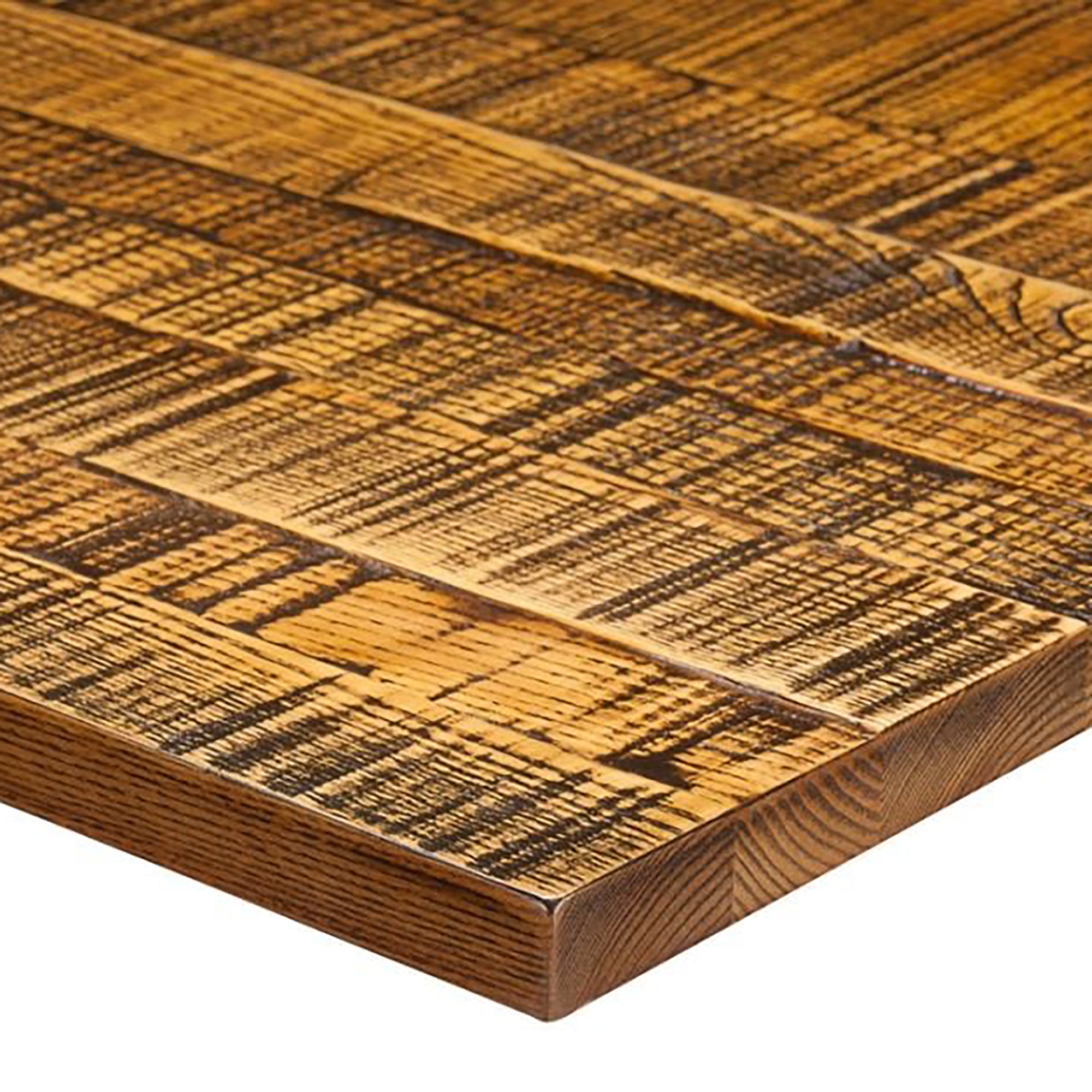 This solid wood table top is made from real ash wood and is finished in a light oak stain and finished to make it have a jagged effect and are designed for restaurants, cafes, hotels, and wine bars in mind. Solid wood table tops give a natural look to any dining environment and are easy to maintain. Available in a wide variety of edge styles (see images), this tabletop is also available in a wide range of finishes and styles.