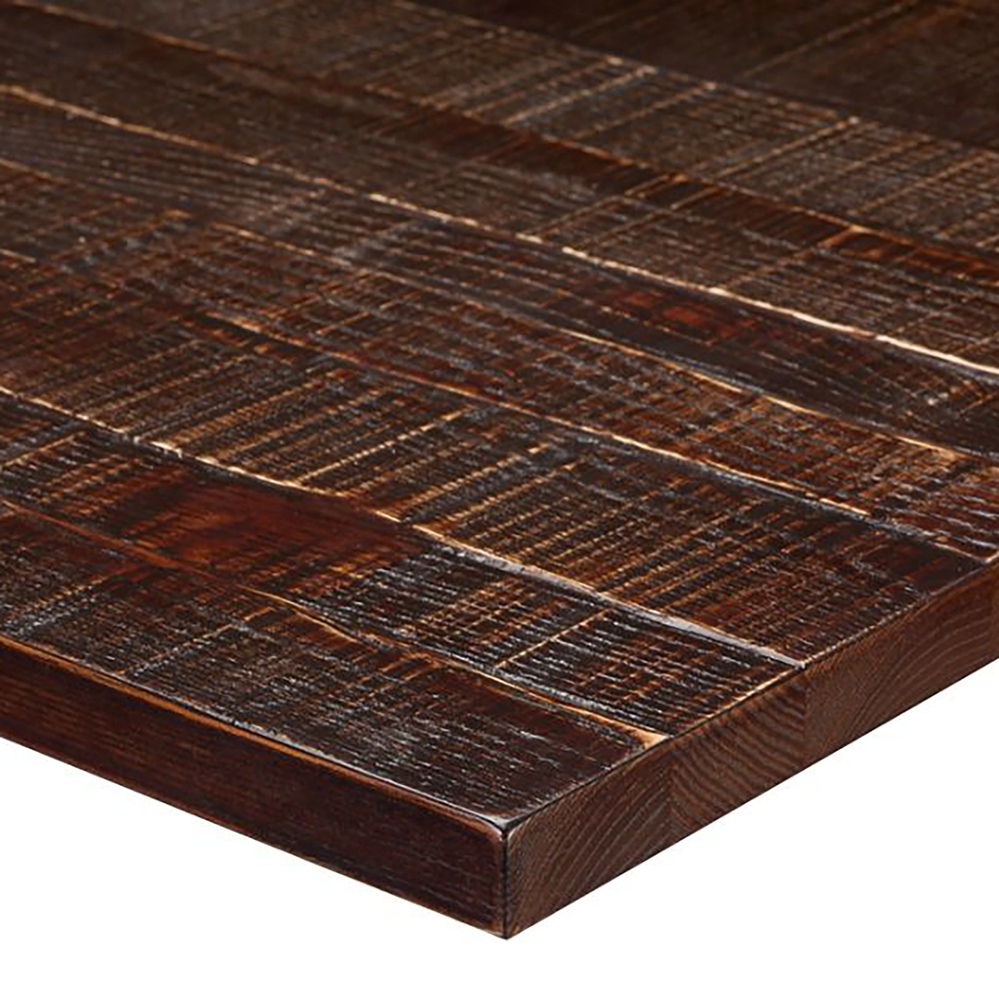 This solid wood table top is made from real ash wood and is finished in a walnut stain and finished to make it have a jagged effect and are designed for restaurants, cafes, hotels, and wine bars in mind. Solid wood table tops give a natural look to any dining environment and are easy to maintain. Available in a wide variety of edge styles (see images), this tabletop is also available in a wide range of finishes and styles.